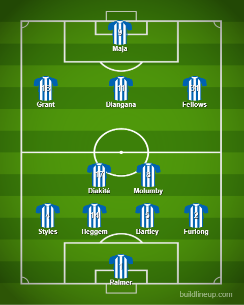 I would play more the less the same XI as the Preston game where the back 4 would stay in the same, I keep Diakite paired up with Molumby, Fellows and Grant I play at attacking wingers with Diangana behind Josh Maja in attack.