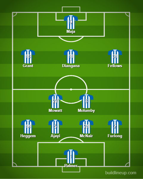 My Line Up starts with McNair at the back with Semi Ajayi and I play Darnell Furlong and Torjborn Heggem as full backs. Mowatt and Molumby come into midfield with Grant, Diangana and Fellows just behind Josh Maja in attack.